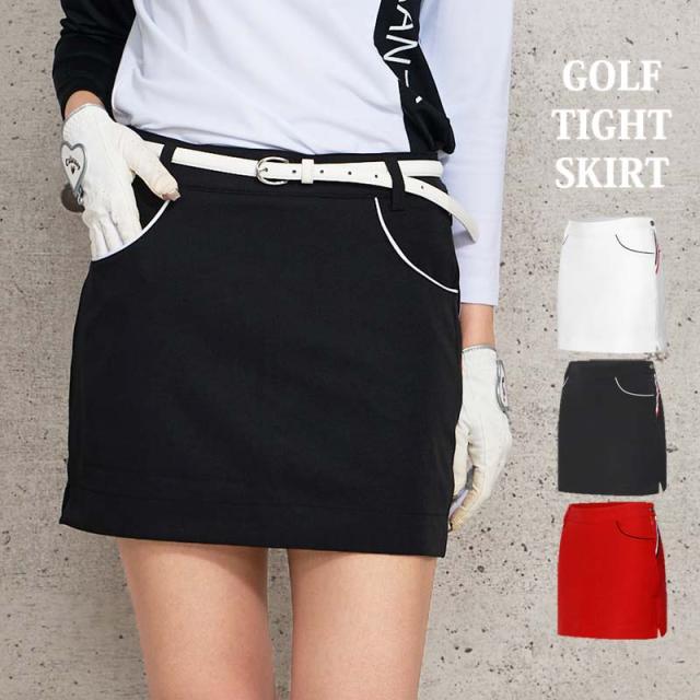 パイピングとカラーラインがデザインされたゴルフタイトスカートです。