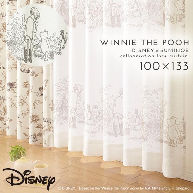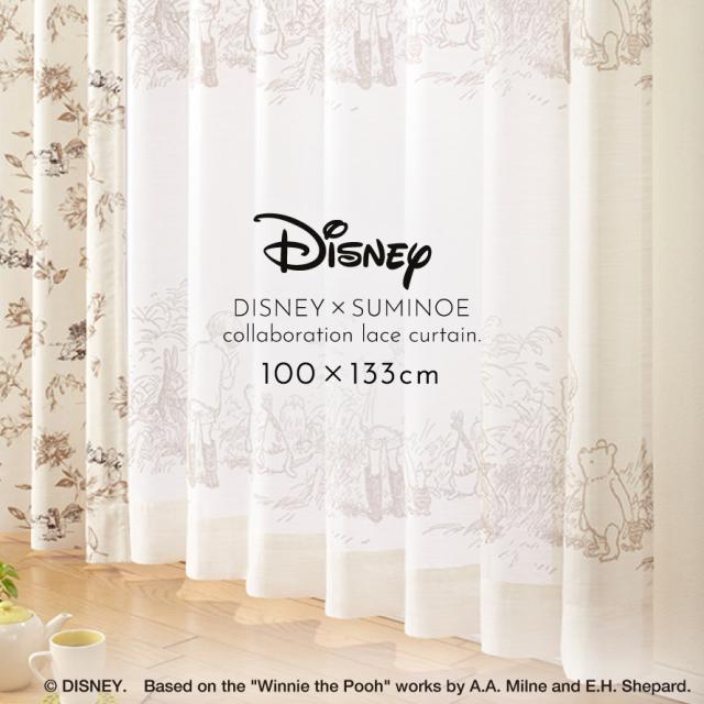 ディズニー カーテン プーさん レース 100×133cm レースカーテン 北欧 インテリア シークレット 1枚 日本製 洗える おしゃれ スミノエ SUMINOE メーカー直送