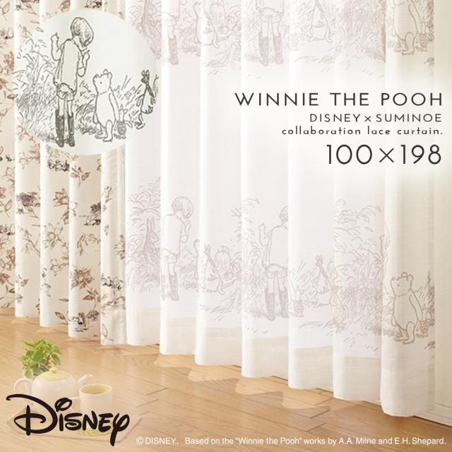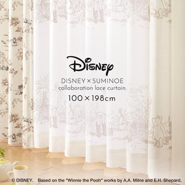 ディズニー カーテン プーさん レース 100×198cm レースカーテン 北欧 インテリア シークレット 1枚 日本製 洗える おしゃれ スミノエ SUMINOE メーカー直送