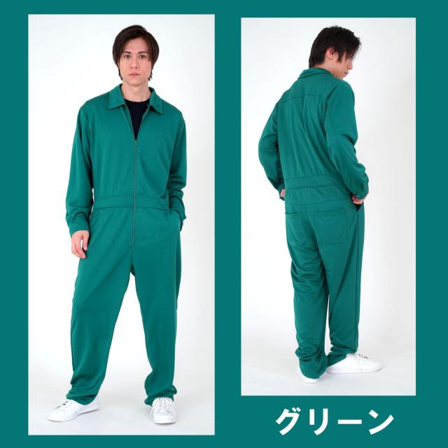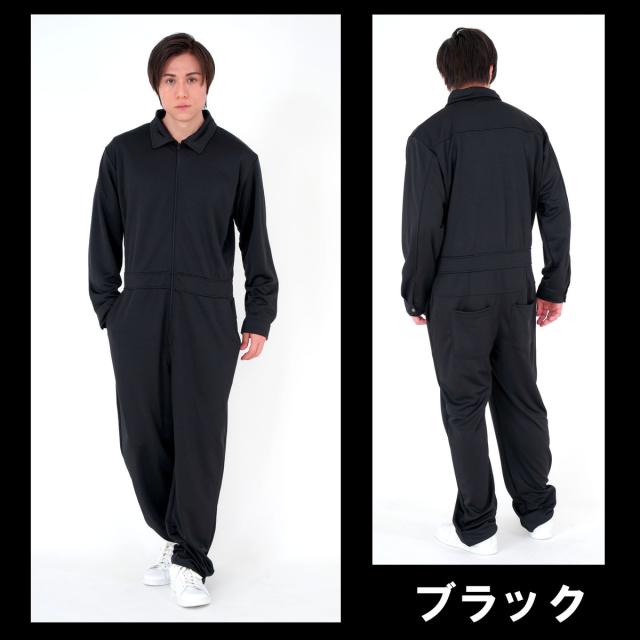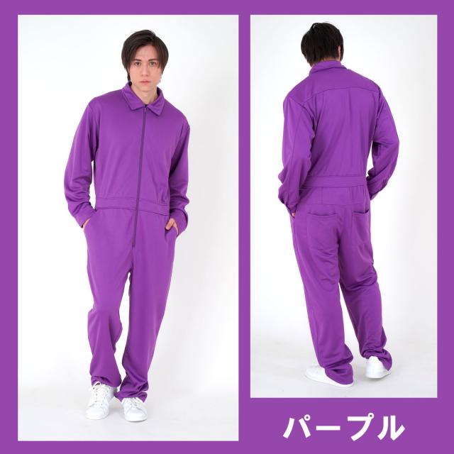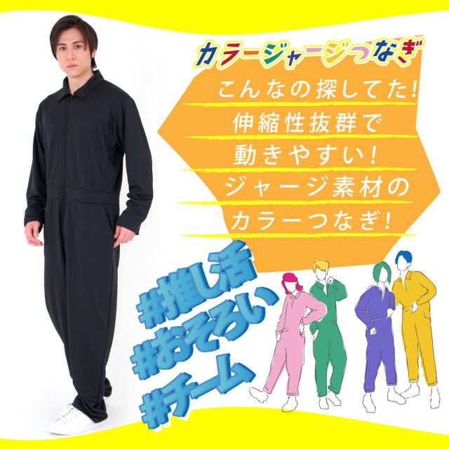 つなぎ オーバーオール メンズ ジャージ オールインワン M L ブラック ブルー グリーン パープル ピンク レッド ホワイト イエロー 推し活 チームウェア お揃い 合宿 作業着 ファスナー ポケット