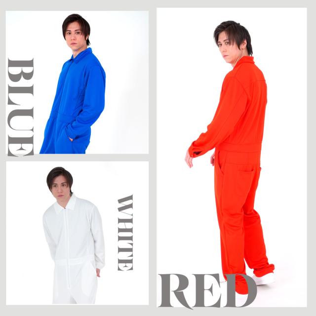 【在庫処分】つなぎ メンズ オールインワン オーバーオール 作業着 ジャージ カラフル イベント ダンス 部活 チーム ウェア ストレッチ 伸縮性があり脱ぎ着が楽々