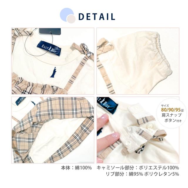 EASTBOY イーストボーイ Tシャツ 半袖 ベビー キッズ 綿100% フェイクレイヤード チェック ベビー服 子供服 80 90 95 100 110 120 130 karlas 2023ss