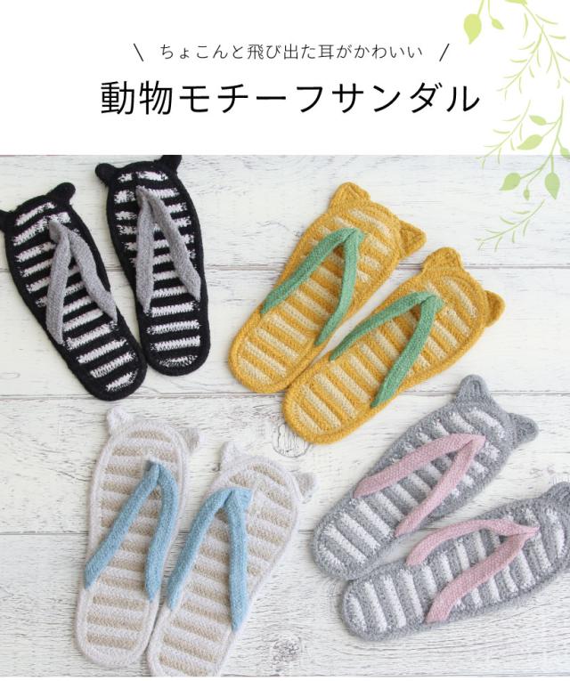 【メール便1枚のみ対応可能】お耳がちょこん♪ リサイクルコットンサンダル【アニマルモチーフ】室内 レディース スリッパかわいい おしゃれ【N】【Y】