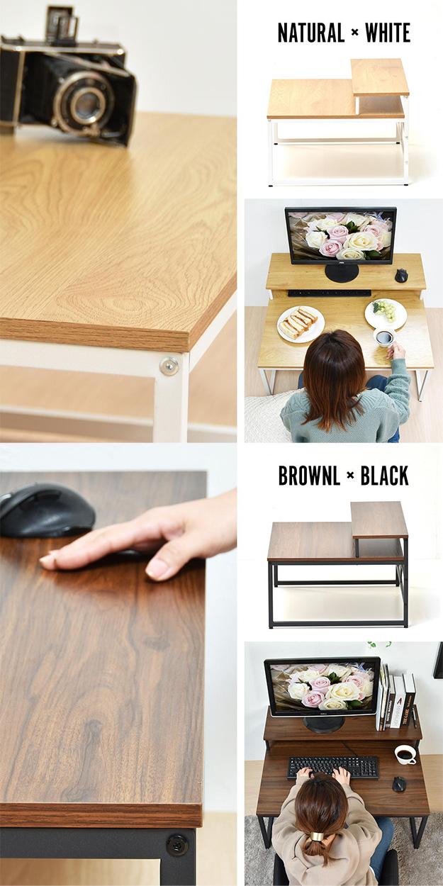 パソコンデスク メラミン ローデスク ONDK0108 パソコン台 PCデスク 座卓 省スペース ローテーブル ロータイプ モニターラック付き SOHO 在宅勤務 パソコン机