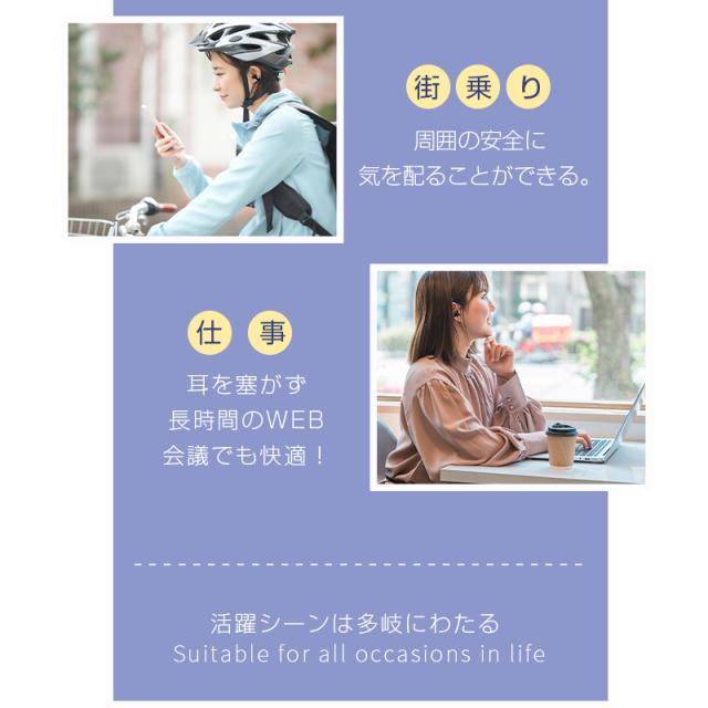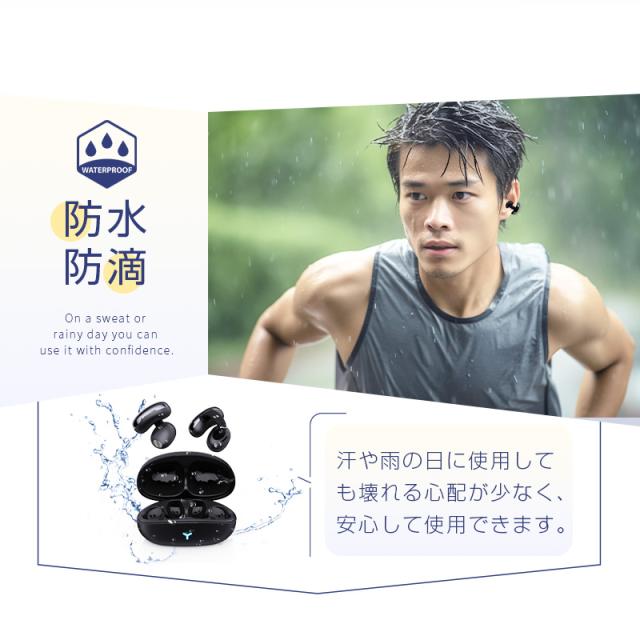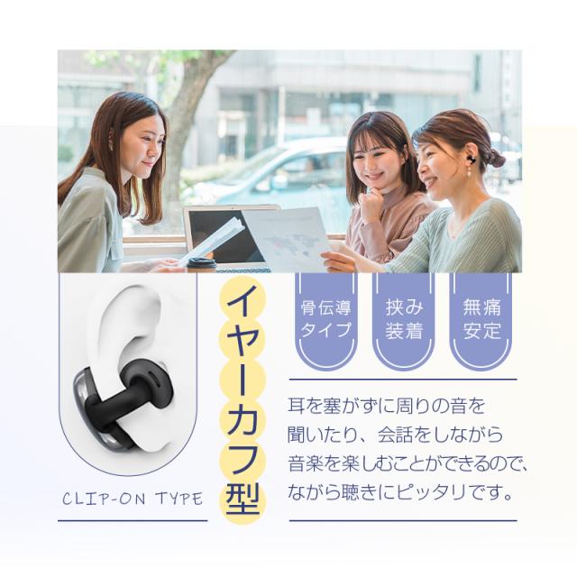 【究極の心地よさへ】フィット感と安心感しっかりとした装着感を実現するために革新的なイヤーカフ型を採用して、さまざまな耳に挟んで装着し、連結部はソフトなのに確実なグリップ力を発揮します。歩いたり、走ったり、ジャンプしたりしても、しっかりと固定されます。また、装着したことを忘れるほど軽く、長時間つけても痛くなりにくい、快適な使い心地を実現します。