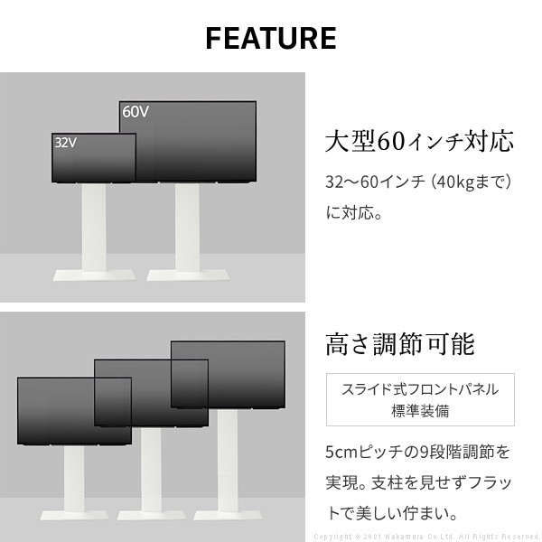 32インチ〜60インチまで対応。(テレビ40kgまで)