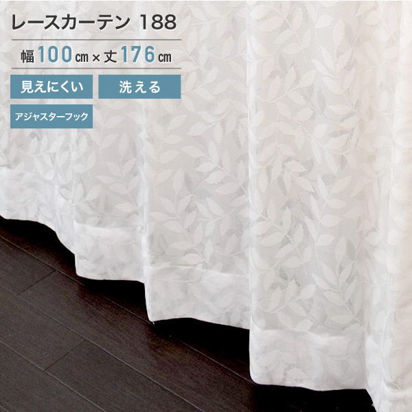 外から見えにくいレース 188 ホワイト 2枚組 100×176cm (ho-188117)レース カーテン UVカット アジャスターフック 断熱 保温 洗えます 夜でも見えにくい
