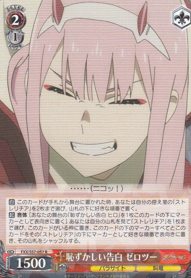 ヴァイスシュヴァルツ FXX/S57-057 恥ずかしい告白 ゼロツー (R レア) ブースターパック ダーリン・イン・ザ・フランキス