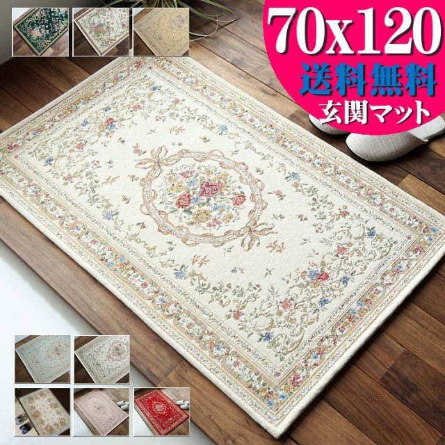 玄関マット 室内 おしゃれ 70×120 洗える ゴブラン織り ラグマット ベルギー 緑 アイボリー など9色 風水 マット 花柄 送料無料 風水 ピンク レッド 北欧 屋内