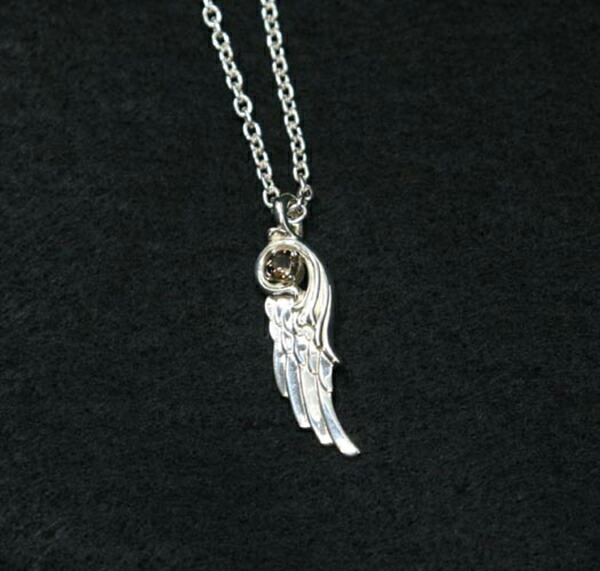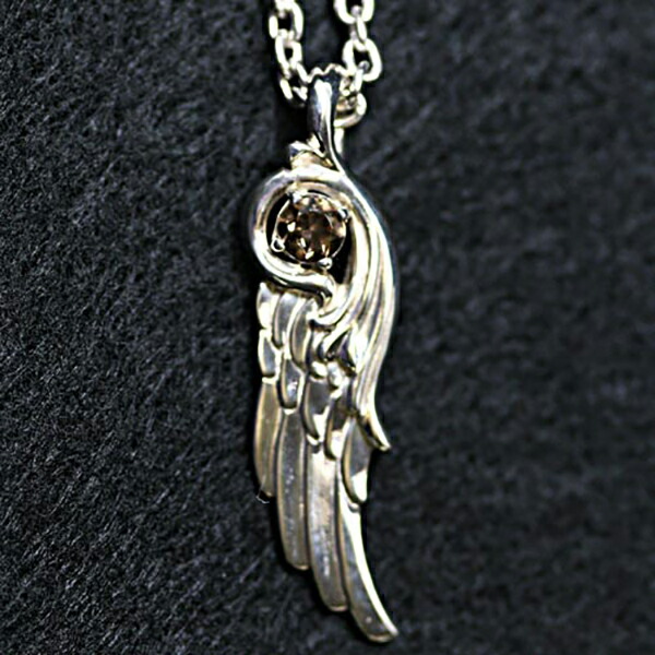 シンプルな翼のペンダント、5mmの石が付くモデルです。