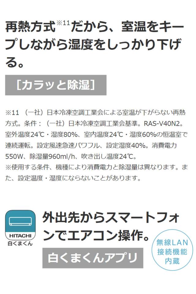 | RAS-V22N/6畳 | RAS-V25N/8畳 | RAS-V28N/10畳 | RAS-V36N/12畳 |