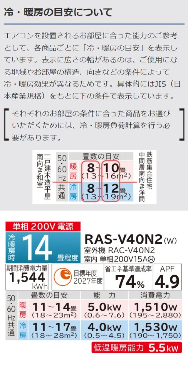 | RAS-V22N/6畳 | RAS-V25N/8畳 | RAS-V28N/10畳 | RAS-V36N/12畳 |