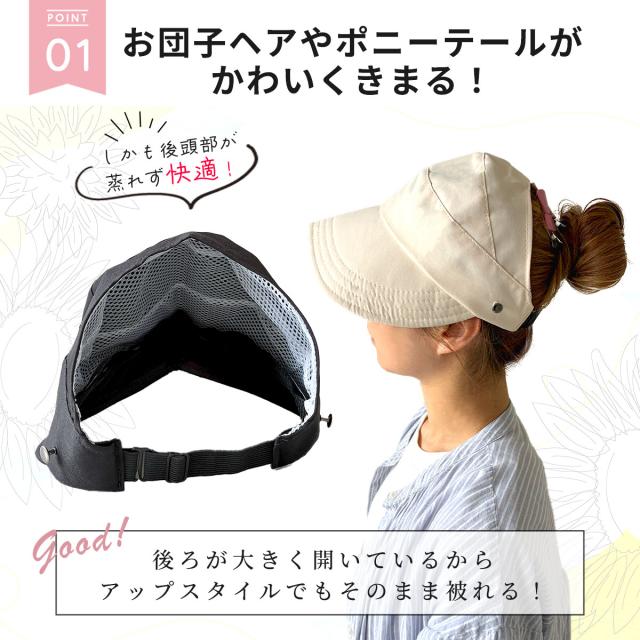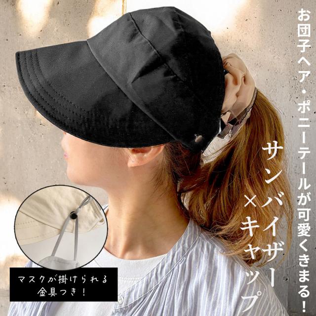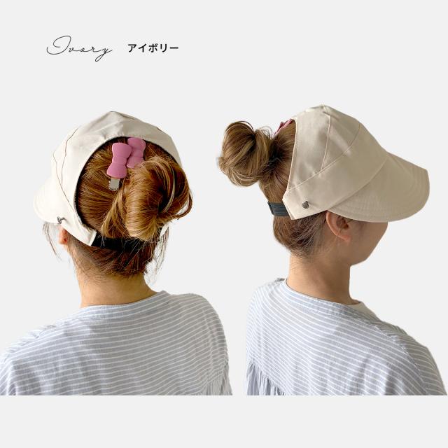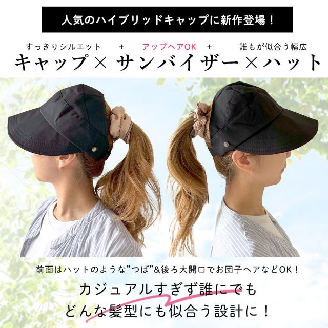 ポニーテール・お団子OK!サンバイザーとハットとキャップのいいとこどりレディースキャップ!