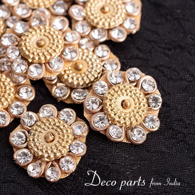 【10個入】インドのビジュー デコパーツ 小クリスタル×ヴィンテージゴールド / 手芸 パーツ、手芸、アップリケ、刺繍、ミラー、ビーズ、ハンドメイド、ビジュー 布とファブリック 【インドとアジアンの布