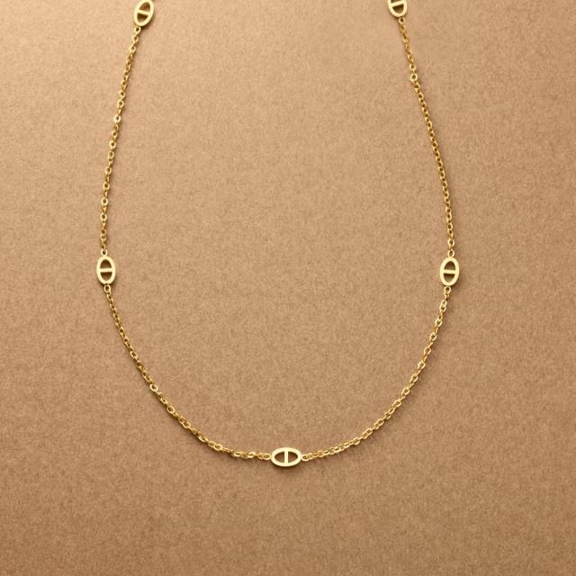 マリンモチーフが等間隔に連なるステーションネックレス。繊細に煌めく華奢なデザインが、女性らしい華やかな印象に仕上げてくれます。錆びにくいステンレス製で、カジュアルからキレイめまでおしゃれなアクセントとして活躍しそう◎