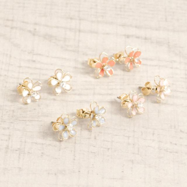 爽やかな色合いのパステルカラーフラワーピアス♪