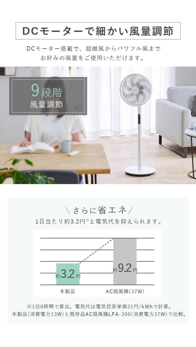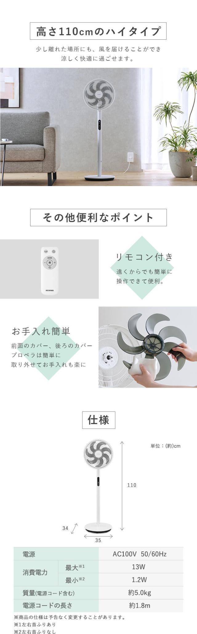 扇風機 dc扇風機 リビング扇風機 dcモーター 静音 省エネ 上下 左右 首振り パワフル送風 風量最大9段階 7枚羽根 入 切タイマー リモコン付き ハイタイプ 空気循環 節電 換気 リビングファン 簡単操作 LFD-301D アイリスオーヤマ *