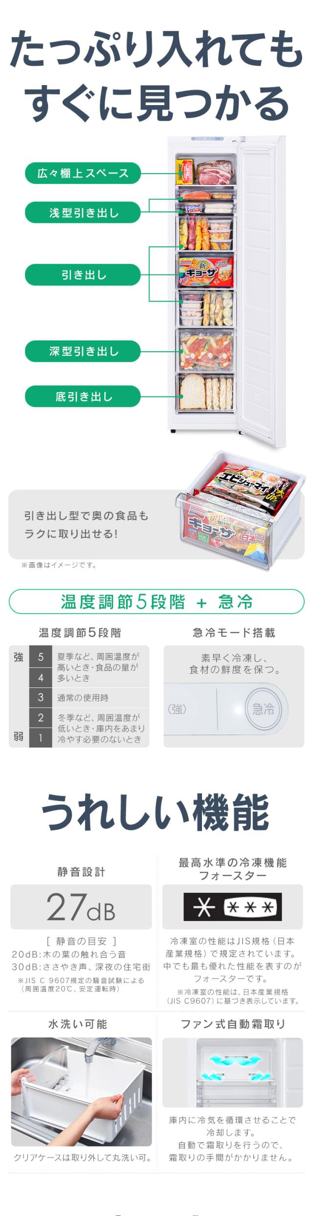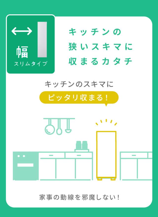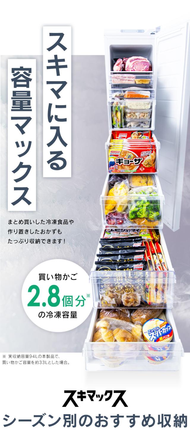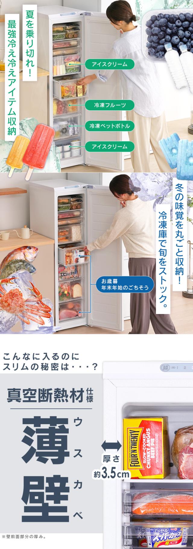 狭いスペースでも置きやすいセカンド冷凍庫です。