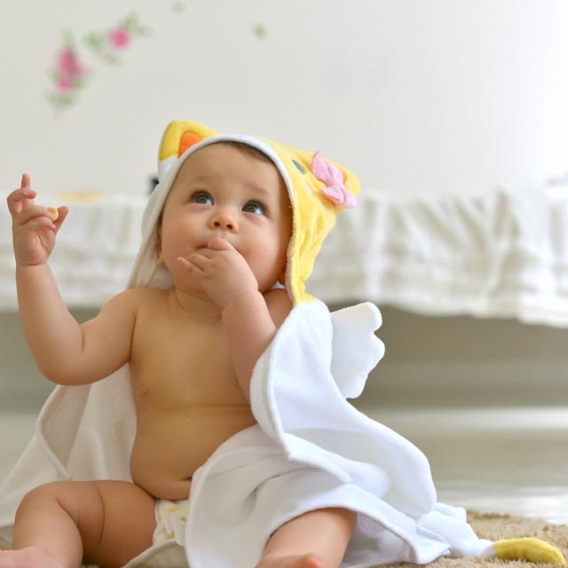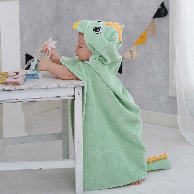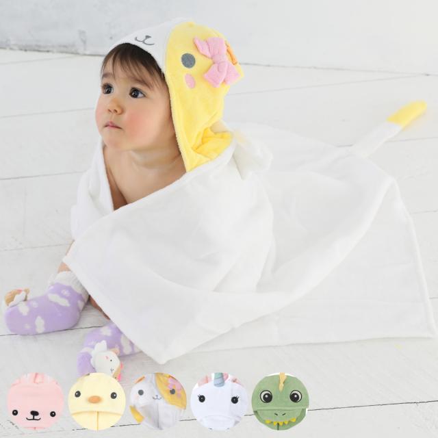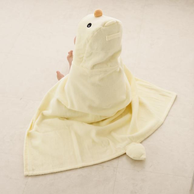 動物のフードが付いたフードバスタオルです。お風呂上りにサッとかぶせたり、プールや海での使用や、外出先の冷房の冷えが気になる時など便利に使え、かわいい動物に変身した赤ちゃんに癒されます。また、約60×82cmのゆったりサイズなので、赤ちゃんから2歳頃まで長く使えます。