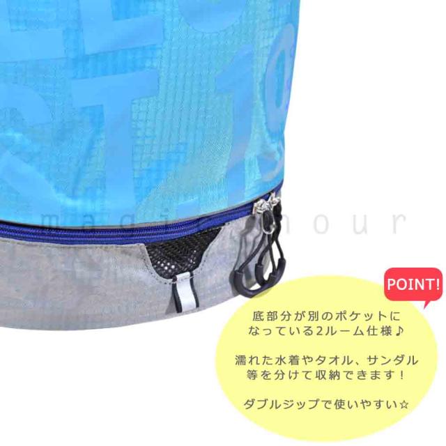 プールバッグ 男の子 キッズ ジュニア 子供 ナップザック ブランド スイムバッグ ビーチバッグ 水泳 リュック コンパクト ナップサック ボンサック 青 ブルー 黒