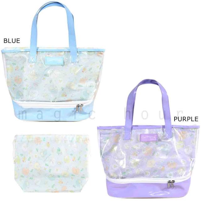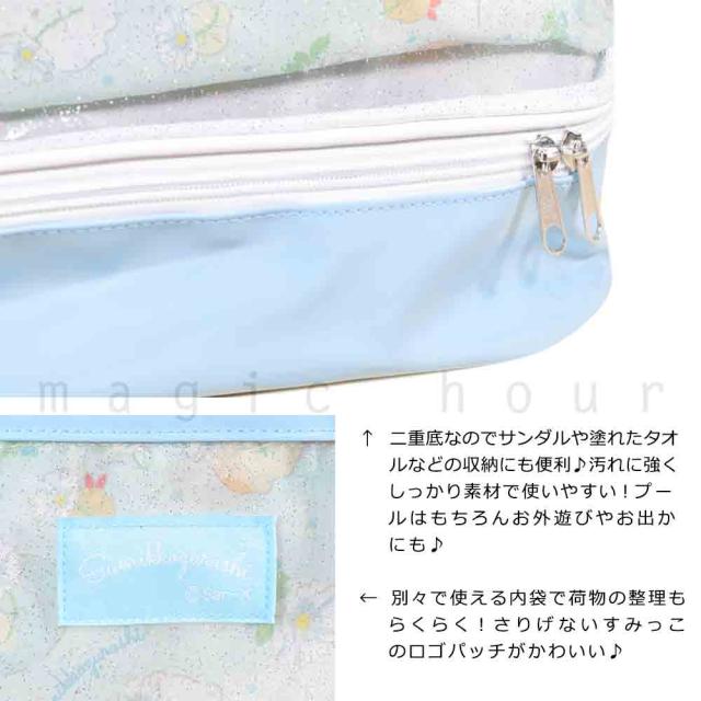 検) すみっこぐらし スイミング バック かわいい ママ 海水浴 ビニールバック 大きめ 子ども ガールズ スイムウェア 人気 水着 女子 小学生 透明 クリア ピンク 青 ブルー パープル インナーバッグ 二重底