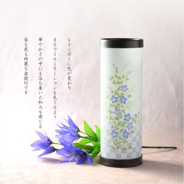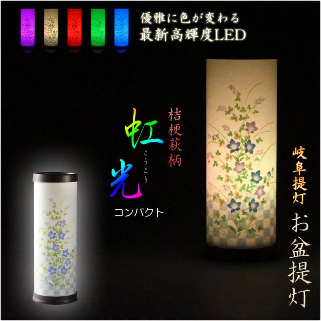 お盆提灯【岐阜提灯・最新高輝度LED採用:テルミナ虹光(こうこう)桔梗萩・コンパクト】お盆用品 お盆飾り 霊前灯 提灯 モダン提灯 電池灯 仏壇用仏具 新盆 初盆 盆花 迎え火 送り火 インテリア行灯