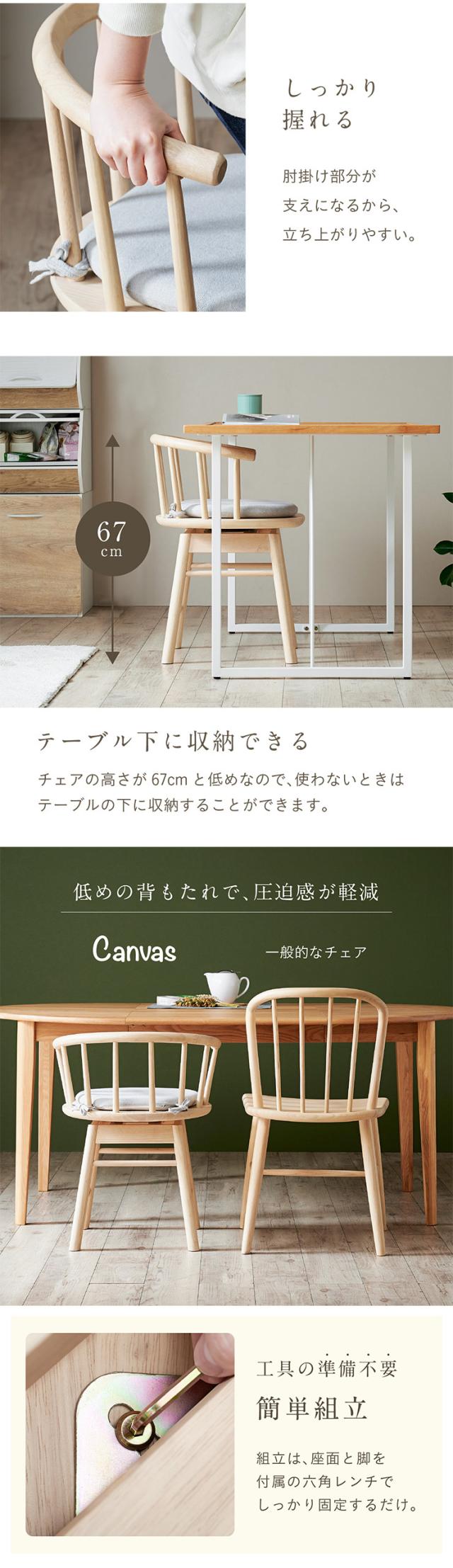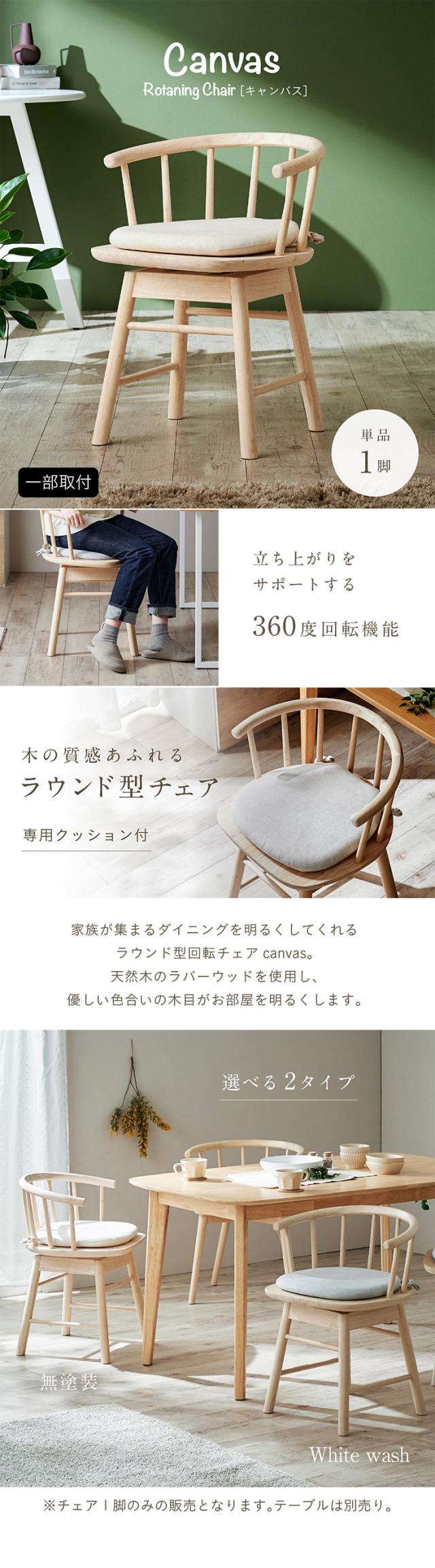 【簡単組立】ダイニング 回転チェア Canvas(キャンバス) 1脚 2色対応 ダイニングチェア ダイニングチェアー 回転椅子 デスクチェア ラバーウッド 天然木 木製チェア いす イス 木製 椅子 食卓椅子 木製椅子 無塗装 シンプル おしゃれ