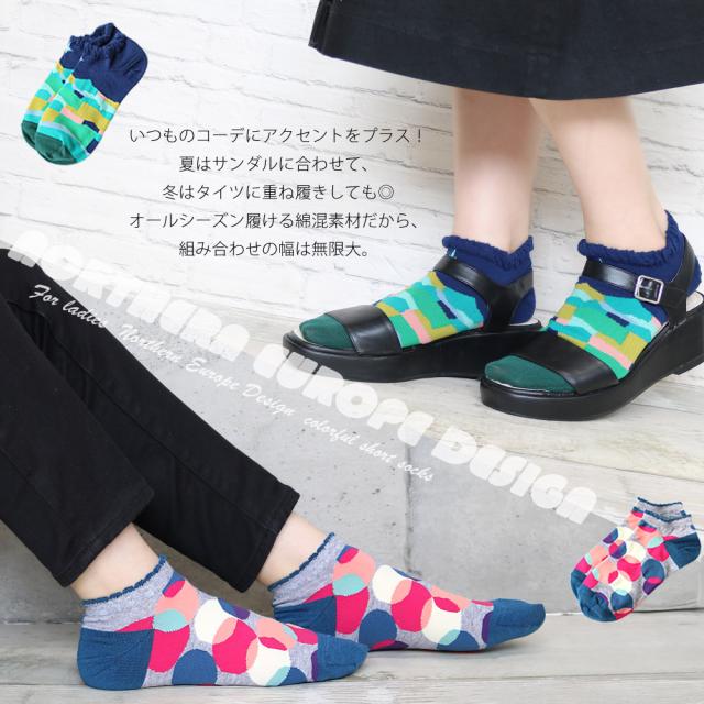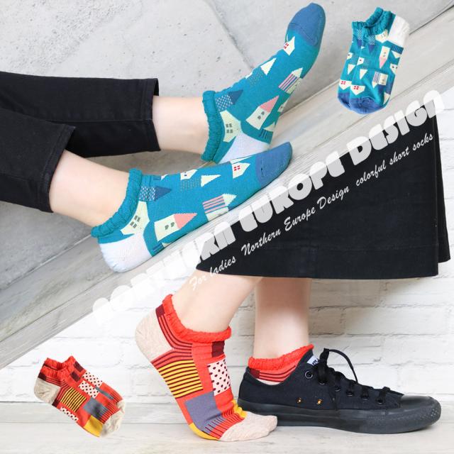 彩り豊かな北欧デザインのショート丈ソックスです。
