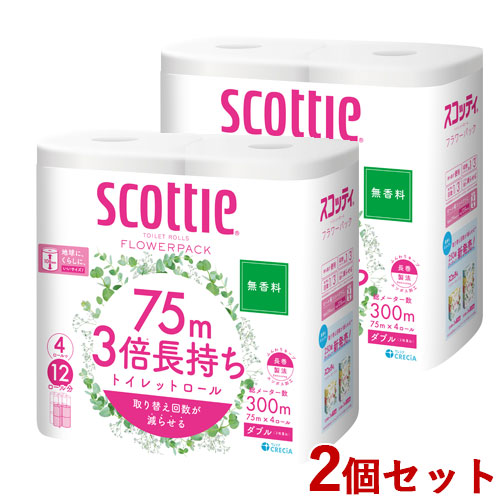 スコッティ フラワーパック 3倍長持ち 無香料 75m(ダブル)×4ロール 2個セット トイレットペーパー トイレットロール ティッシュ scottie 日本製紙クレシア(Crecia)【送料込(北海道除く)】