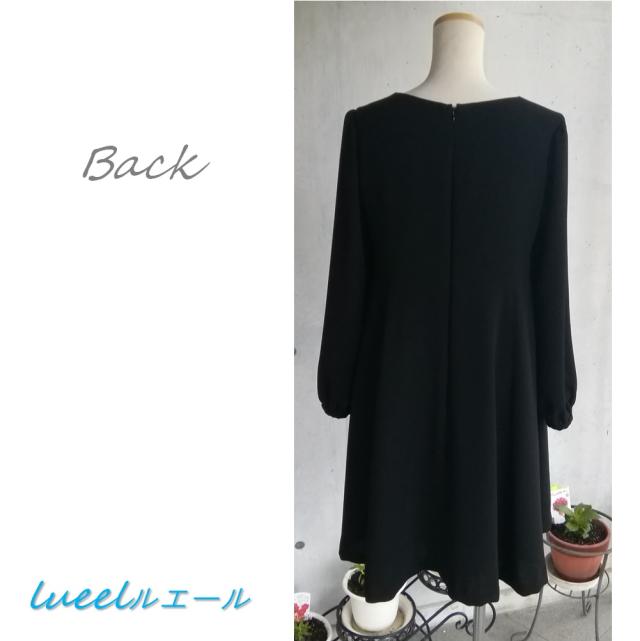 喪服 フィットアンドフレアーのひざ丈ワンピース 《7L〜10L》ブラックフォーマルワンピース 115800-3