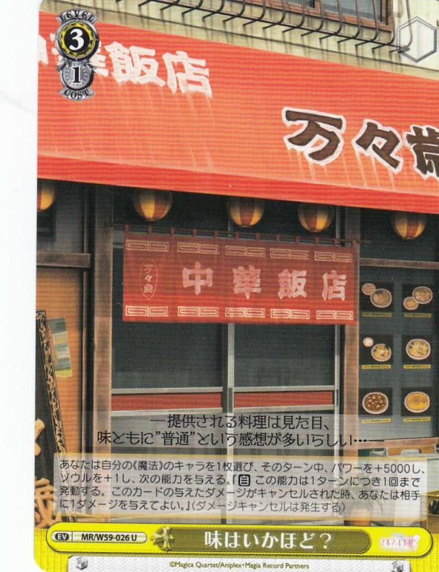 ヴァイスシュヴァルツ MR/W59-026 味はいかほど?(U) ブースターパック マギアレコード 魔法少女まどか マギカ外伝