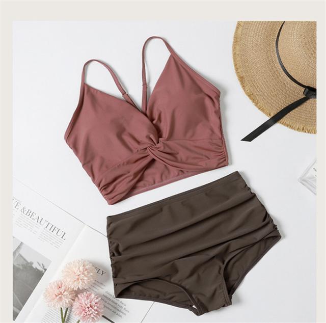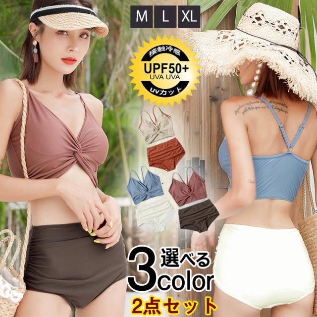 水着 レディース ビキニ ビーチウェア 2点セット ワンピ風 胸パッド付き スイムウェア セパレート 着痩せ 温泉 プール セク
