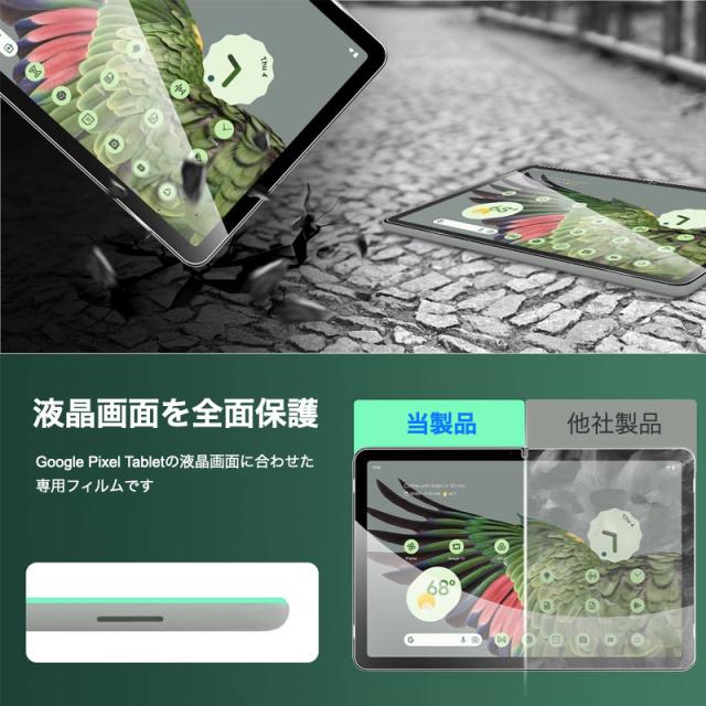 Google Pixel Tablet 2023年 11インチ ガラスフィルム 耐指紋 撥油性 表面硬度 9H 2.5D 高透過率 反射低減タイプ 光沢表面仕様 液晶保護 気泡ゼロ 貼りやすい 9H強化ガラスフィルム 保護フィルム