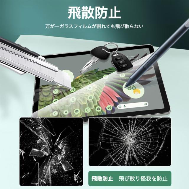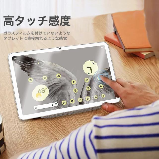 ★高光沢透明度が高く、ディスプレイ本来の鮮やかさを保ちます。動画の視聴に最適です。●硬強度[9H]強くて、割れにくい。●タッチがしやすい滑らかな指ざわりで細やかな操作も問題無し!●汚れ・指紋防止汚れや指紋がつきづらく、さっとひと拭きで簡単綺麗●飛散防止割れてしまっても、大切な手を傷つけない●貼りやすい画面の埃を拭いて、位置を合わせて、載せるだけ。勝手に自然吸着して、気泡も入らないからガラスフィルムのご使用が初めてでも簡単に貼ることができます。●2.5Dラウンドエッジ加工iPadスクリーンとの一体感がより向上【対応機種】●Google Pixel Tablet 2023年 11インチ