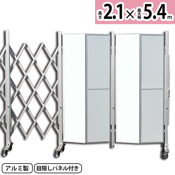 アルミゲート AXG2054P(2mパネル付き 幅5.4m×高さ2.1m)アルマックス サイクルクロスゲート ACCG-2054 アルミキャスタークロスゲート 伸縮門扉 アコーディオン門扉 仮設工業会月刊誌に掲載