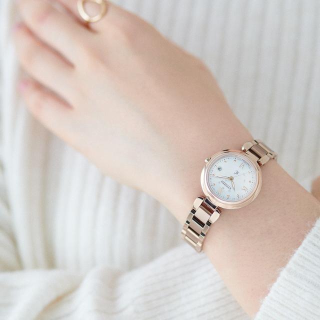 人気のサクラピンクモデルは、パールホワイトの文字板カラーで女性らしくやさしい印象のモデルに仕上げました。