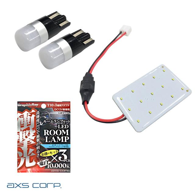 アークス 衝撃光 ルームランプセット T10 3種類アダプタ付属 鬼白 10000K ルーム球 DC12V専用 LEDバルブセット GRX-736