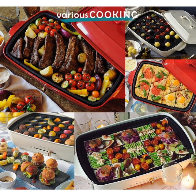 食卓に笑顔が集まる、愉しさが広がる、大きくなったテーブルウェアのようなホットプレート。毎日のお料理からおうちパーティまでさまざまなシーンで活躍する食卓の主役が、4〜5人で愉しめるグランデサイズに。