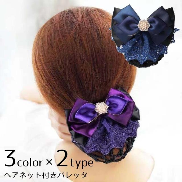 バレッタ ヘアネット付き お団子ヘア シニヨンヘア リボン レディース 女性 婦人 ヘアアクセサリー 髪飾り 髪留め まとめ髪