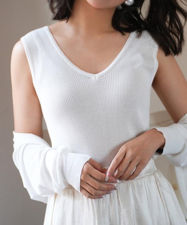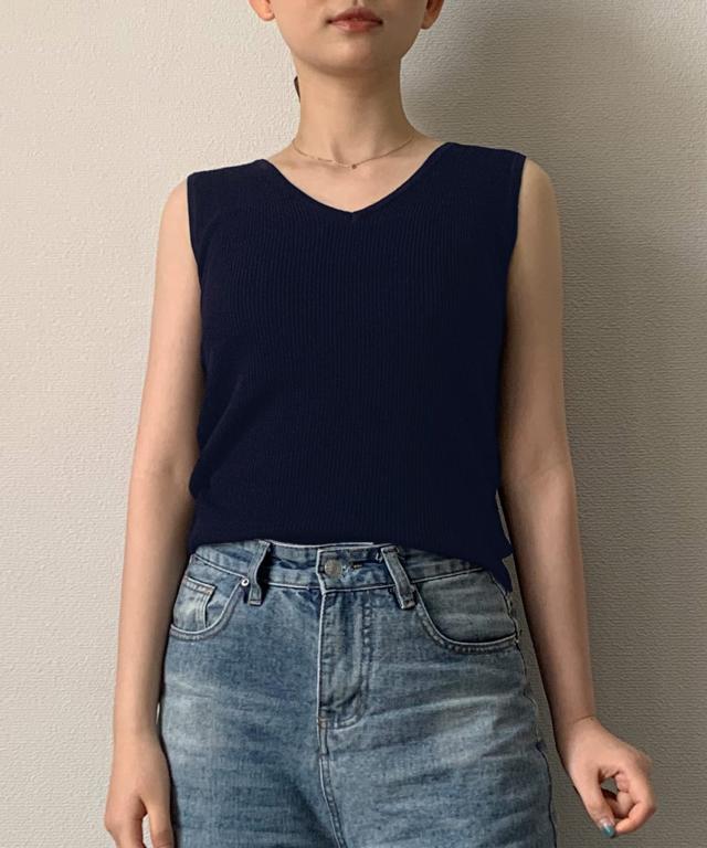 Vネックノースリーブサマーリブニット