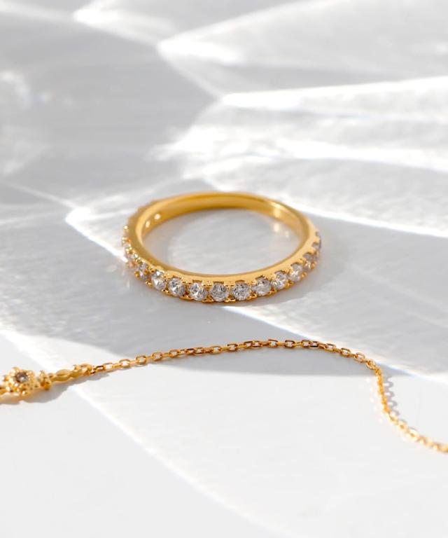 ビジューラインが繊細な輝きを放ち、手元を上品に仕上げるリング。
