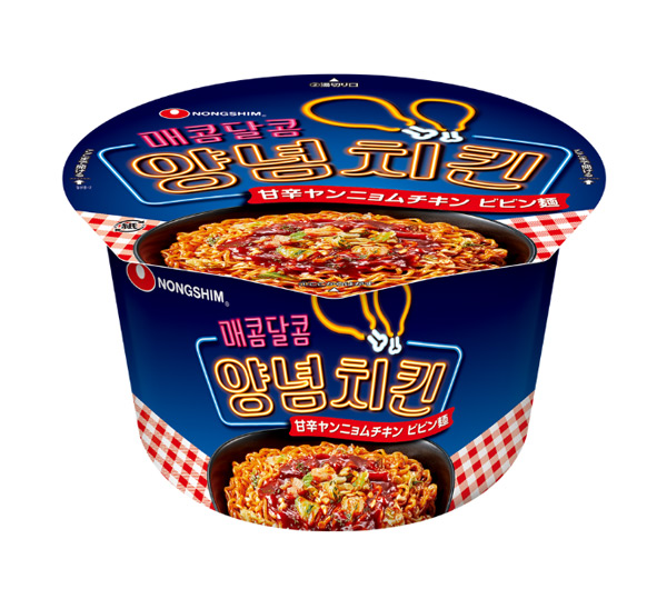 韓国の定番料理ヤンニョムチキンをカップ麺で再現した甘辛いビビン麺。