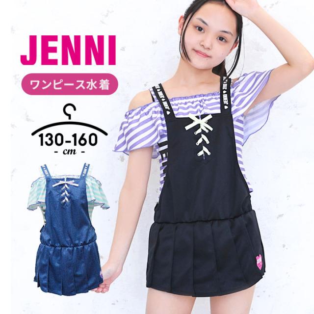 JENNI デザイン水着3点セット キッズ ジュニア 女の子 130cm 140cm 150cm 160cm リボン ブランド ロゴ スカート サロペット プール 水着 海 小学校 ブラック ネイビー 夏 3点セット お洒落 かわいい 水遊び 送料無料