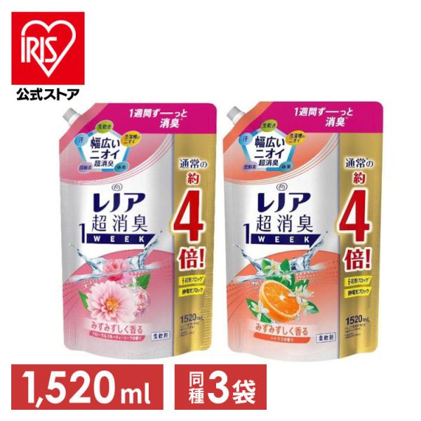 【3個セット】 レノア 超消臭1WEEK 柔軟剤 詰め替え 1520mL P&G 全4種類 レノア超消臭 詰替え 消臭 花粉 静電気 生乾き臭 加齢臭 つめかえ 詰替え ピーアンドジー