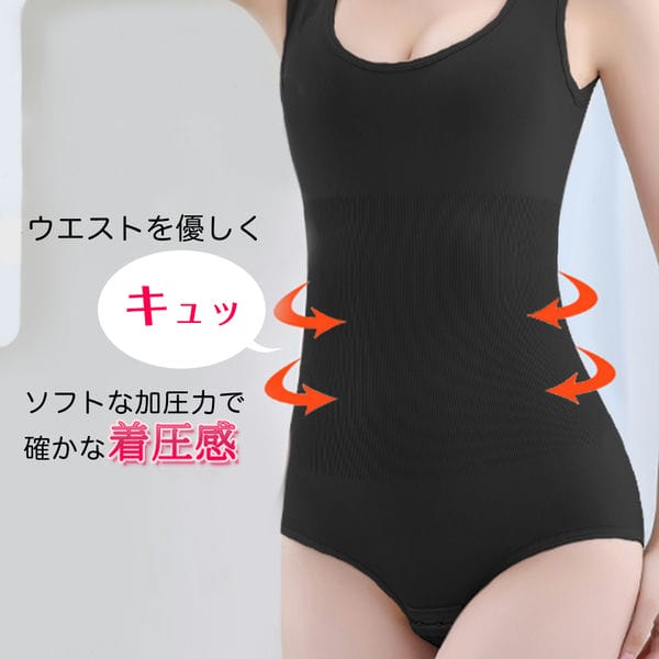 ほどよい着圧でウエストを引き締める、自然な着用感のソフトボディスーツです。