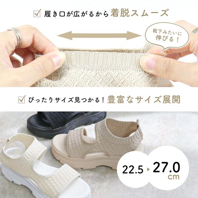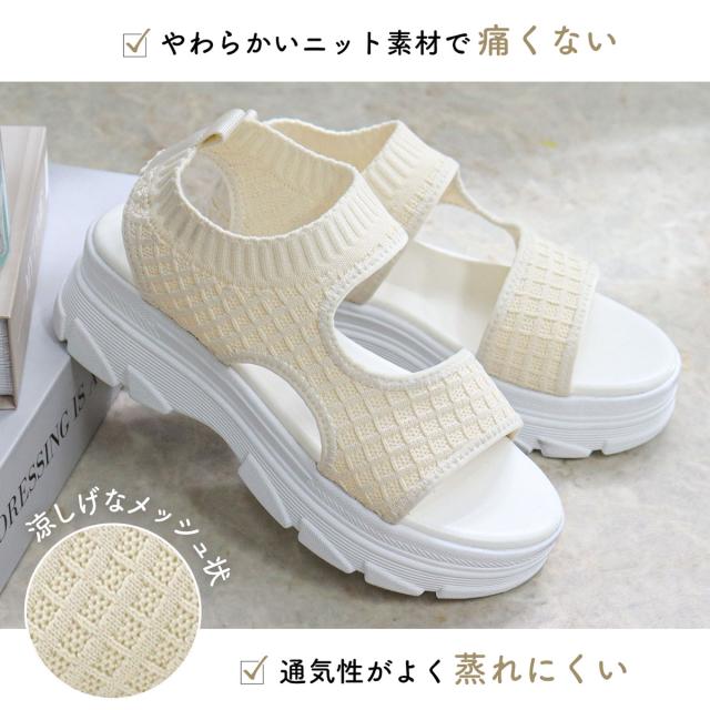 夏に大活躍する事まちがいなし!のニット厚底スポーツサンダル。