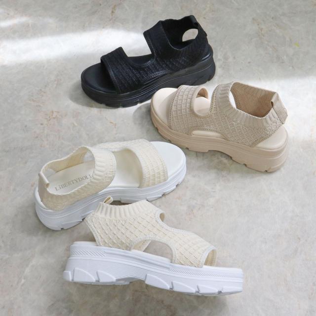 【LiBERTYDOLL リバティードール】のデザインニット厚底スポーツサンダル。