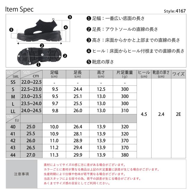 サンダル スポサン レディース ユニセックス ニット素材 厚底 履きやすい 小さいサイズ 大きいサイズ 4.5cmヒール No.4167 22.5cm-27cm リバティードール