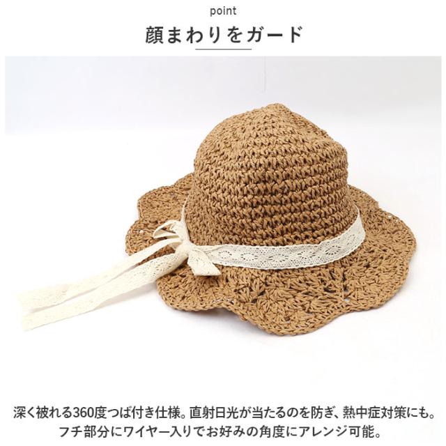 | 商品説明 | ・夏の日よけや熱中症対策に!可愛らしいキッズ用麦わら帽子が新登場。 【暑い季節のコーデにプラスワン♪】 ・ナチュラルで涼しげな風合い。スカラップデザイン&レースリボンで可愛さアップ☆ 【顔まわりをガード】 ・深く被れる360度つば付き仕様。直射日光が当たるのを防ぎ、熱中症対策にも。フチ部分にワイヤー入りでお好みの角度にアレンジ可能。 【ストレスフリーな被り心地】 ・柔らかく軽量なペーパー混紡素材。ちょこんと被れて、締めつけ感を感じにくいのが嬉しい♪ 【自分サイズにフィット】 ・内側の紐でサイズ調節OK。頭の大きさに合わせてフィット感をチェンジ。 【動き回っても安心】 ・伸縮性のあるゴム素材のあご紐付き。元気に動き回る日も、風の強い日も大活躍。 【持ち運びラクラク】 ・折りたためばスリムサイズに。シワになりにくく型崩れもしにくいので、旅行などの持ち運びにも便利。 |