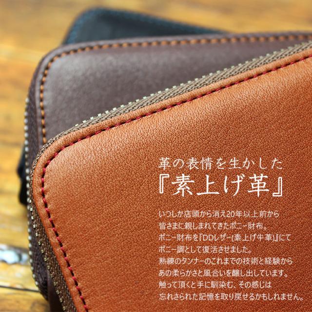 商品説明 | 『気軽に持ち歩ける』 携帯性を追求した小銭入れです。 ポケットやカバンの中で邪魔にならず、気軽に持ち歩ける。 硬貨はもちろん、紙幣やカードもしっかり入れることができる収納力を実現しました。 『スマートな時代』に対応したちょうど良いサイズ感 スマートフォンと比べても小さく、抜群の携帯性を誇ります。 無駄の一切無いデザインはポケットやバッグの中での快適さを大きく変えます。 使い方は『自分次第』 中央にファスナー付きポケット、左右にはそれぞれフリーポケットとカードポケットを配置しました。 フリーポケットには紙幣、カードはもちろん硬貨を分けて入れたり、鍵を入れても便利です。 ICカードが入る『背面ポケット』 背面には便利なカードポケット。 サッと取り出せるのでICカードや定期券の収納に最適です。 デザインのポイントに『カラーステッチ』 カラーステッチが彩り鮮やかで絶妙のアクセントになっています レザーに映える丁寧な縫製は耐久性も抜群です。 細部にまで『拘り抜きました』 ファスナーには全てYKK社製ファスナーを使用することでストレスの無く末永くお使いいただけます。 革本来が持つ『自然な風合い』を生かしたカラーバリーション 使い込むほどに深まる色味や艶などのエイジング(経年変化)を楽しんだり、革の持つ表情や質感を感じてください。 【革について】 いつしか店頭から消え20年以上前から皆さまに親しまれてきたポニー財布。 ポニー財布を『DDレザー(素上げ牛革)』にてポニー調として復活させました。熟練のタンナーのこれまでの技術と経験からあの柔らかさと風合いを醸し出しています。触って頂くと手に馴染む、その感じは忘れさられた記憶を取り戻せるかもしれません。 |